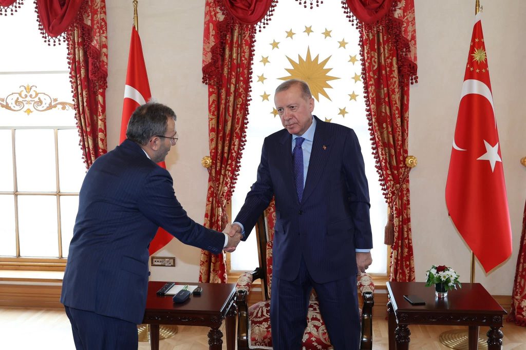 Cumhurbaşkanı Recep Tayyip Erdoğan, Pendik Belediye Başkanı Ahmet Cin’i Cumhurbaşkanlığı Dolmabahçe Ofisi’nde kabul etti.