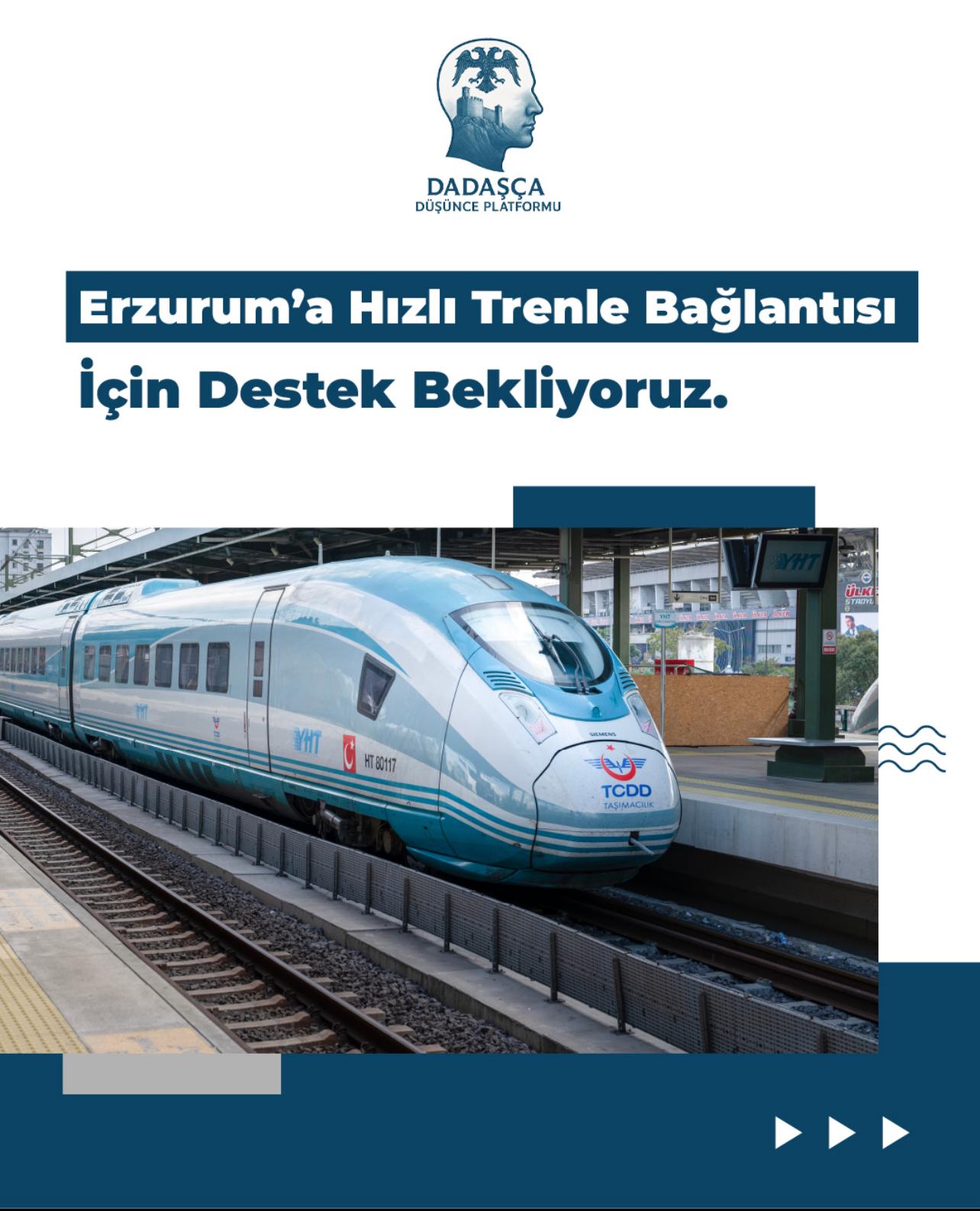 Doğu Anadolu’nun önemli şehirlerinden Erzurum için sesler yükseliyor. Dadaşça Düşünce Platformu, Erzurum’un hızlı tren ağına entegre edilmesi için kamuoyuna açık bir çağrıda bulundu. Platform, 2026 yılı yatırım programında Erzurum’un da yer almasını talep ediyor.